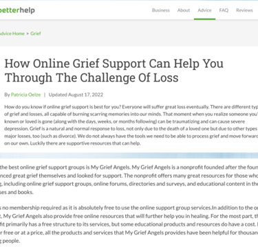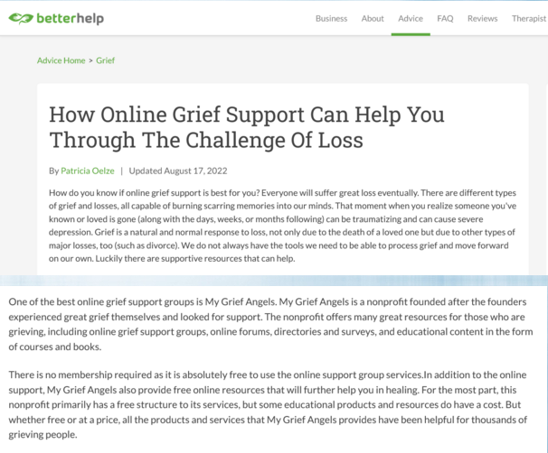 We are not mental health professionals, only people grieving like yourself who found ourselves here in our own search for grief resources, information and education during one of the worst times of our lives. My Grief Angels is a volunteer-powered organization, and if at some point you would like to help others virtually, check out our volunteer opportunities.